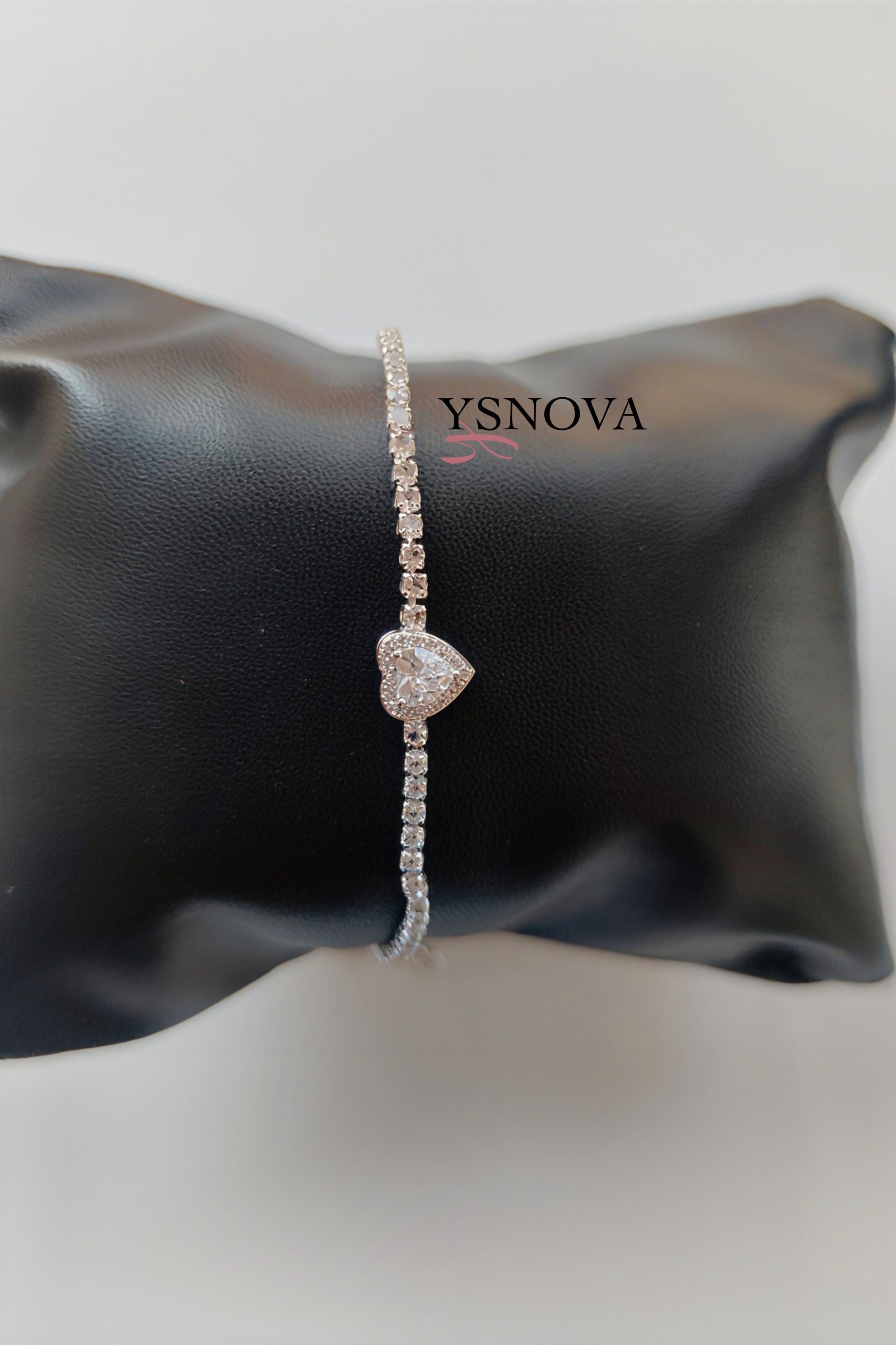 Elegant stainless steel women’s tennis bracelet available in gold or silver plating, featuring sparkling zircon stones and a romantic heart charm. Rust-resistant, durable, and perfect for daily wear or special occasions. A beautiful and timeless jewelry gift for women and girls.