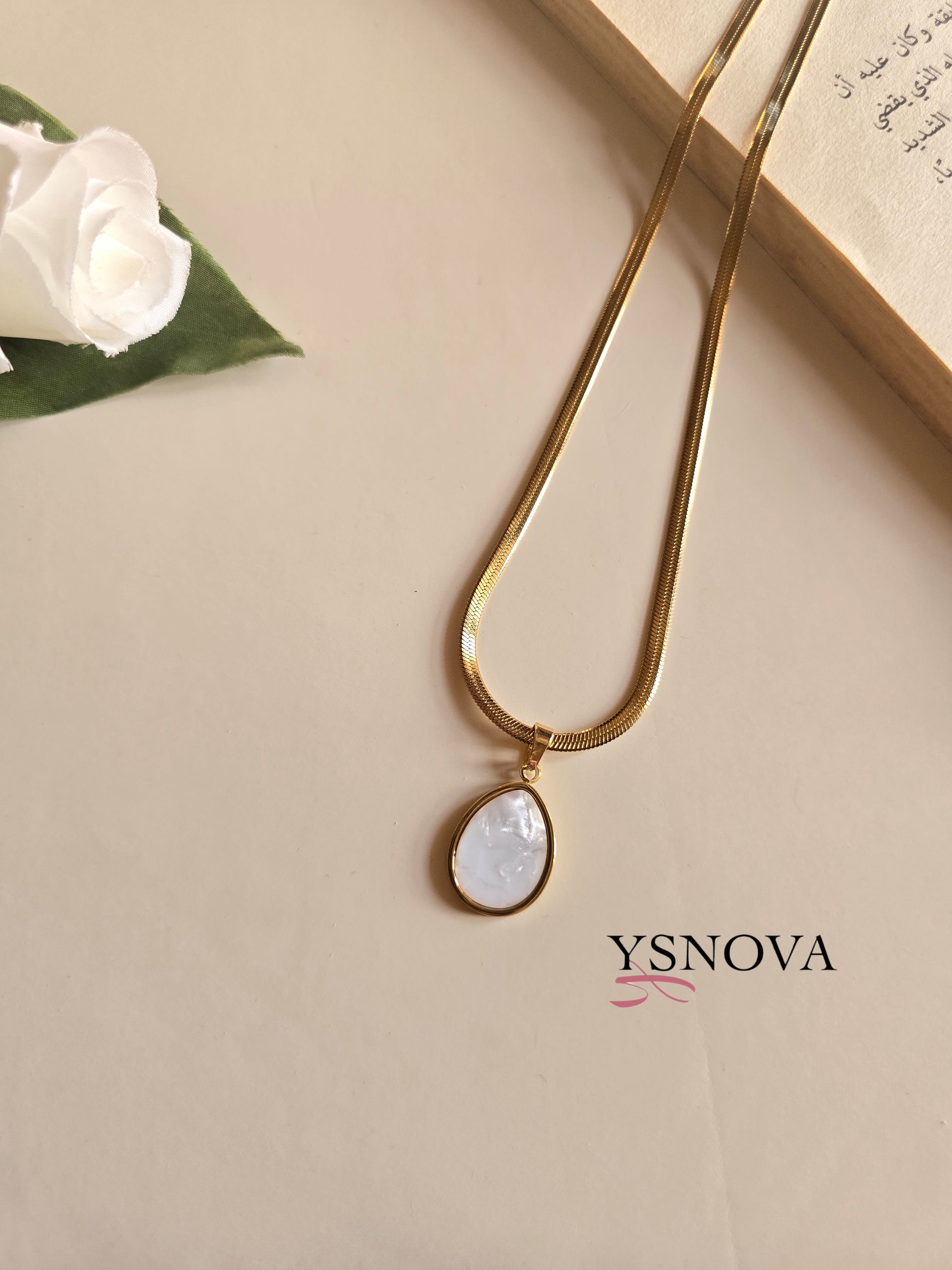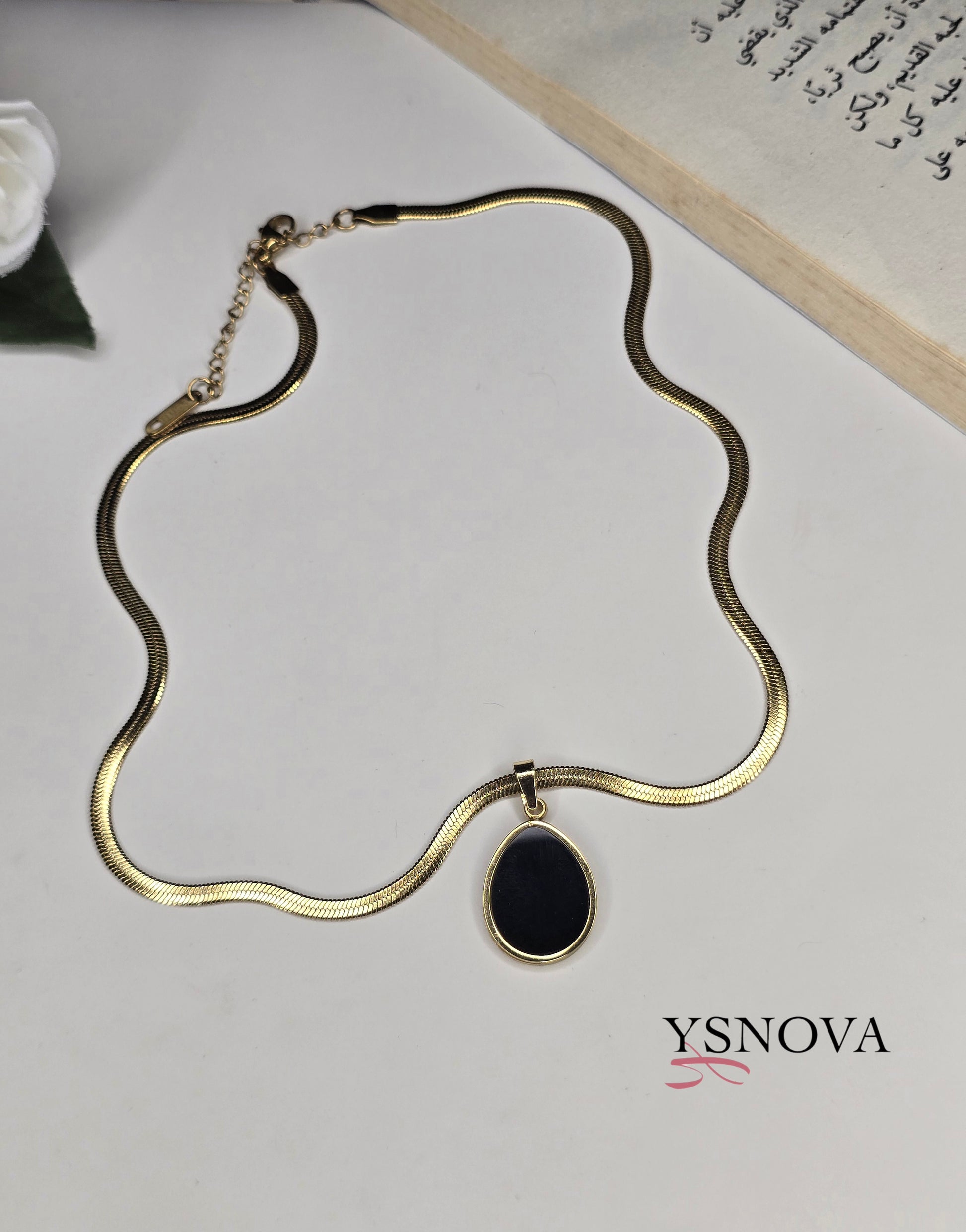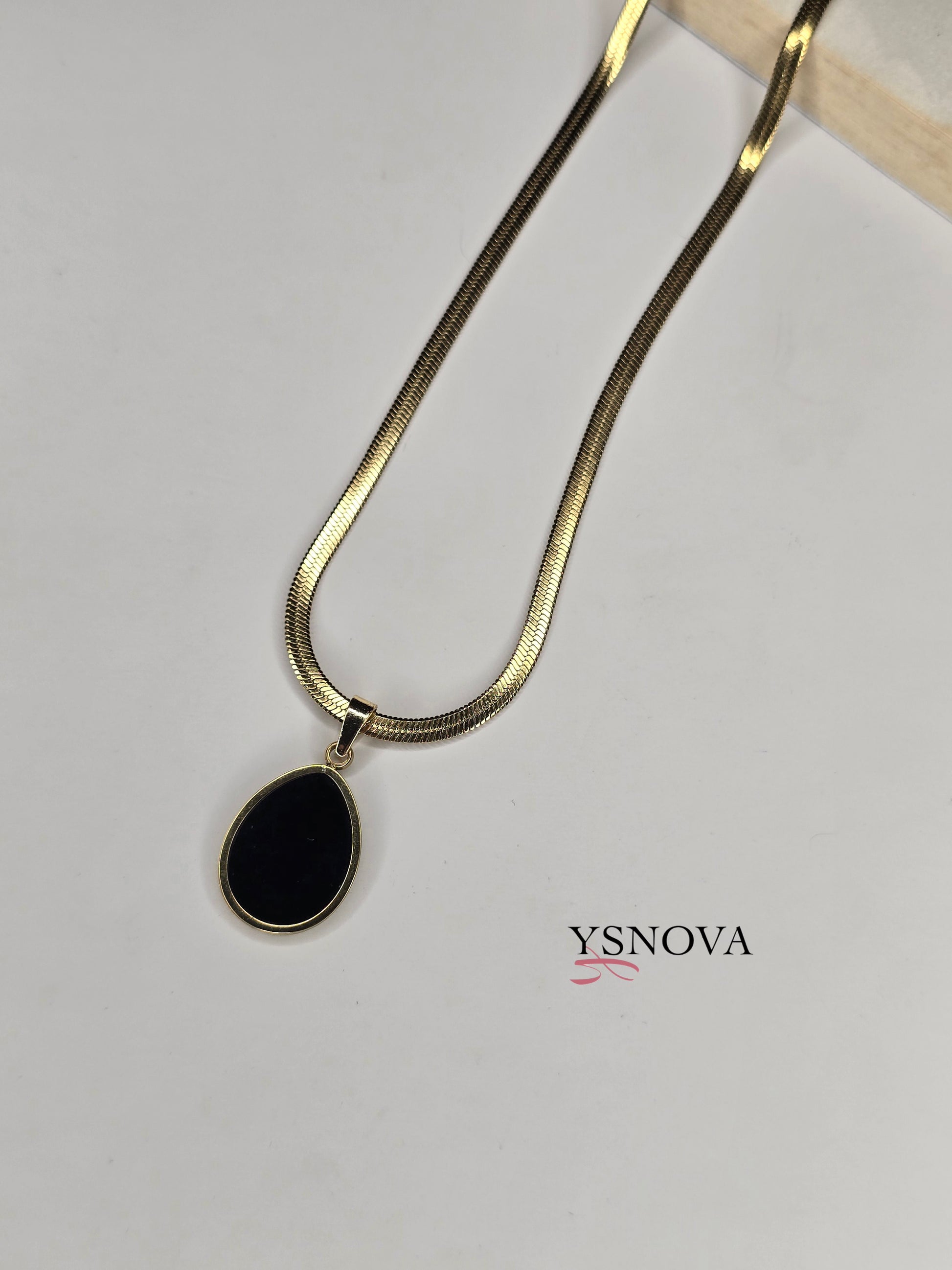 Elegant gold plated stainless steel necklace featuring a classic oval pendant available in black or white, adding a touch of timeless sophistication. Crafted for long-lasting shine and durability, perfect for formal occasions or evening wear. A refined accessory and a thoughtful gift choice for women.