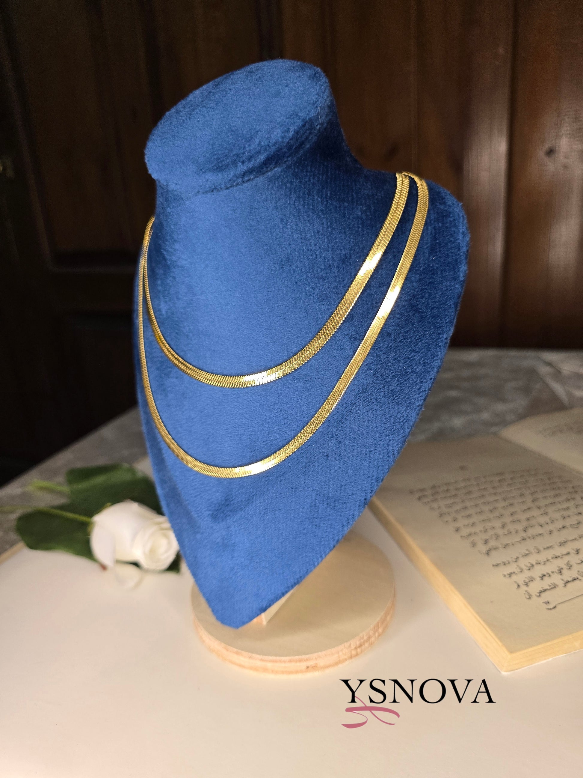 Elegant gold plated stainless steel necklace featuring a sleek double-layer snake chain design that adds a touch of luxury and timeless elegance. Durable and tarnish-resistant, perfect for both casual outfits and evening wear. A classic yet modern accessory that completes any look with effortless style.